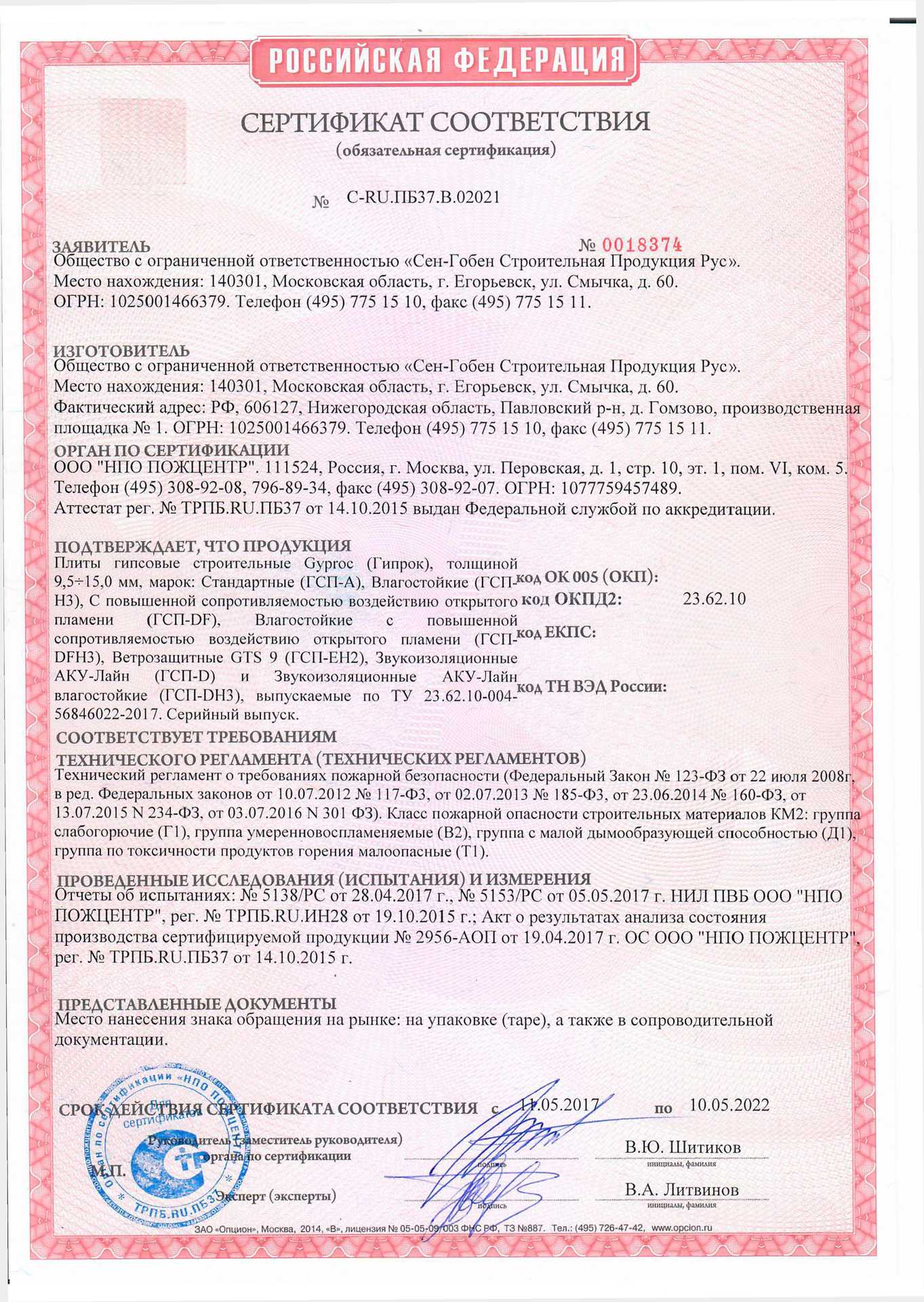 Подтвержденное сертификатами и действующими ГОСТ